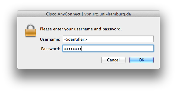 To login to the VPN please provide your UHH-Account-Name: e.g. fmnv165, followed by your RRZ-Password (same password as for your email-account).